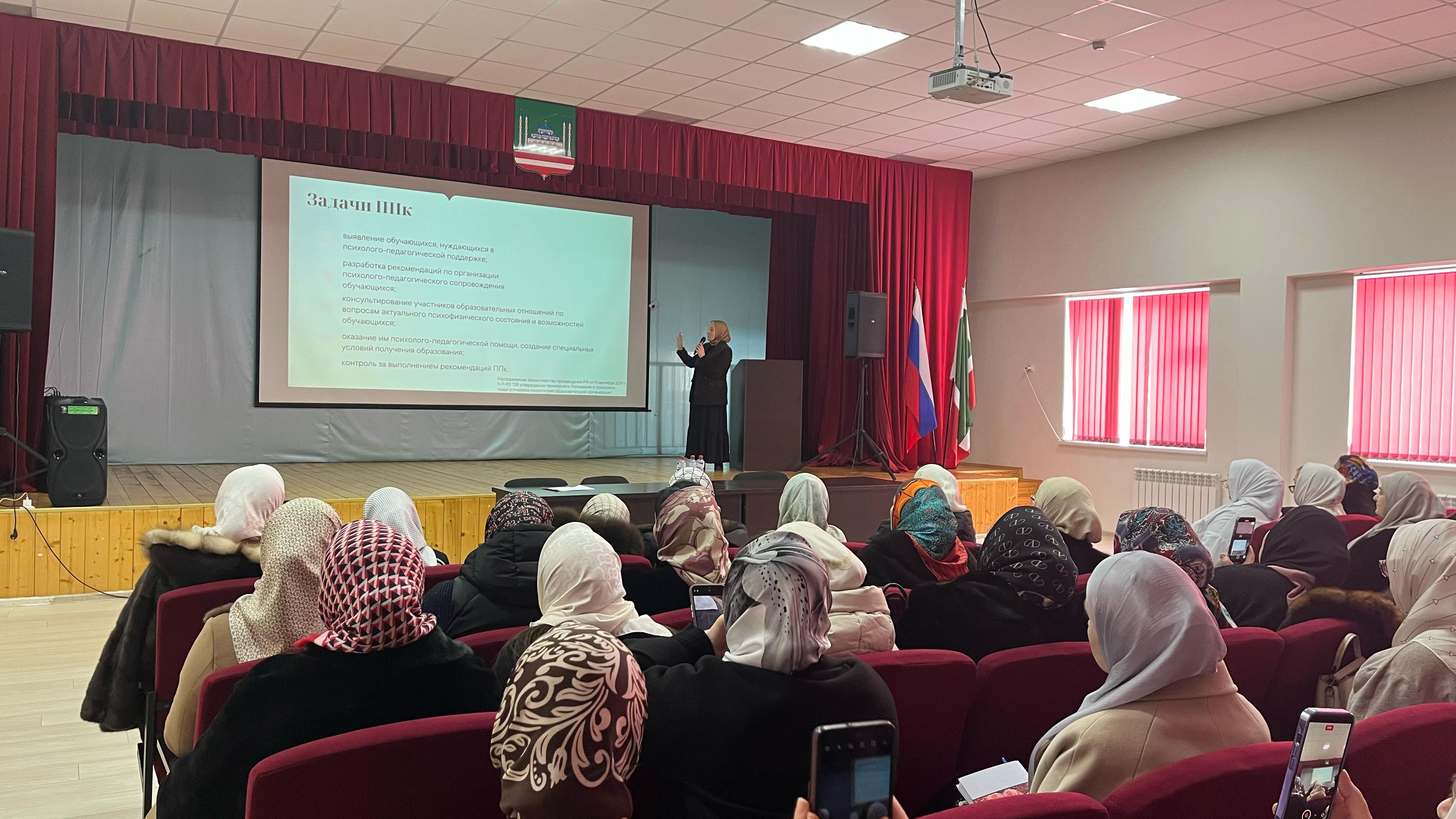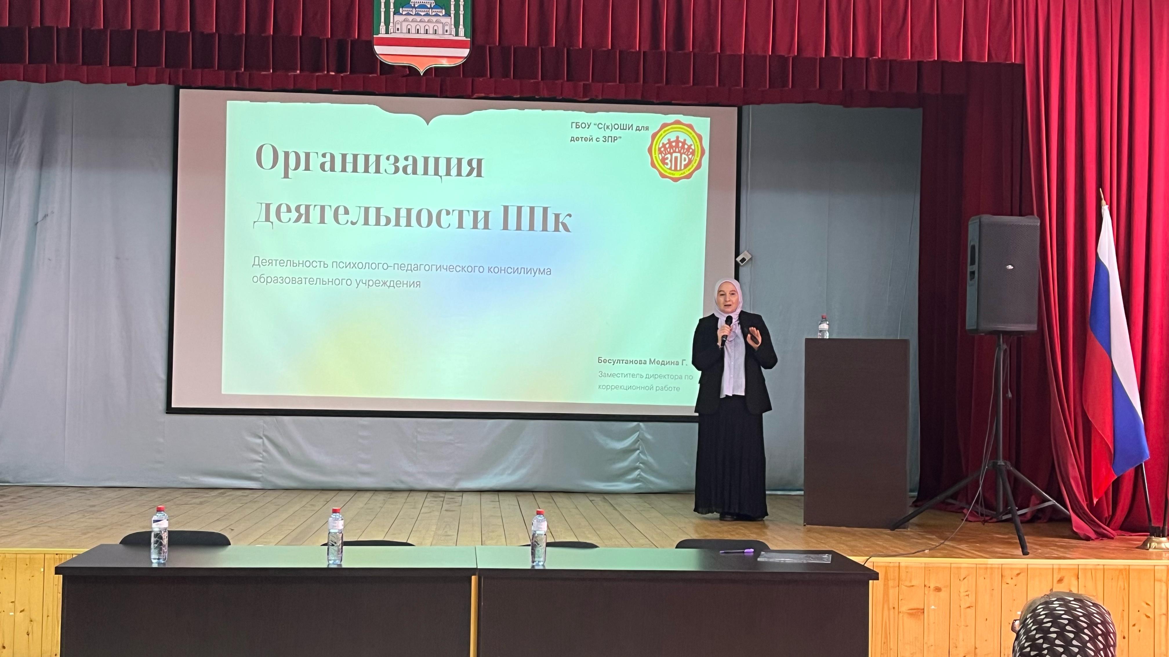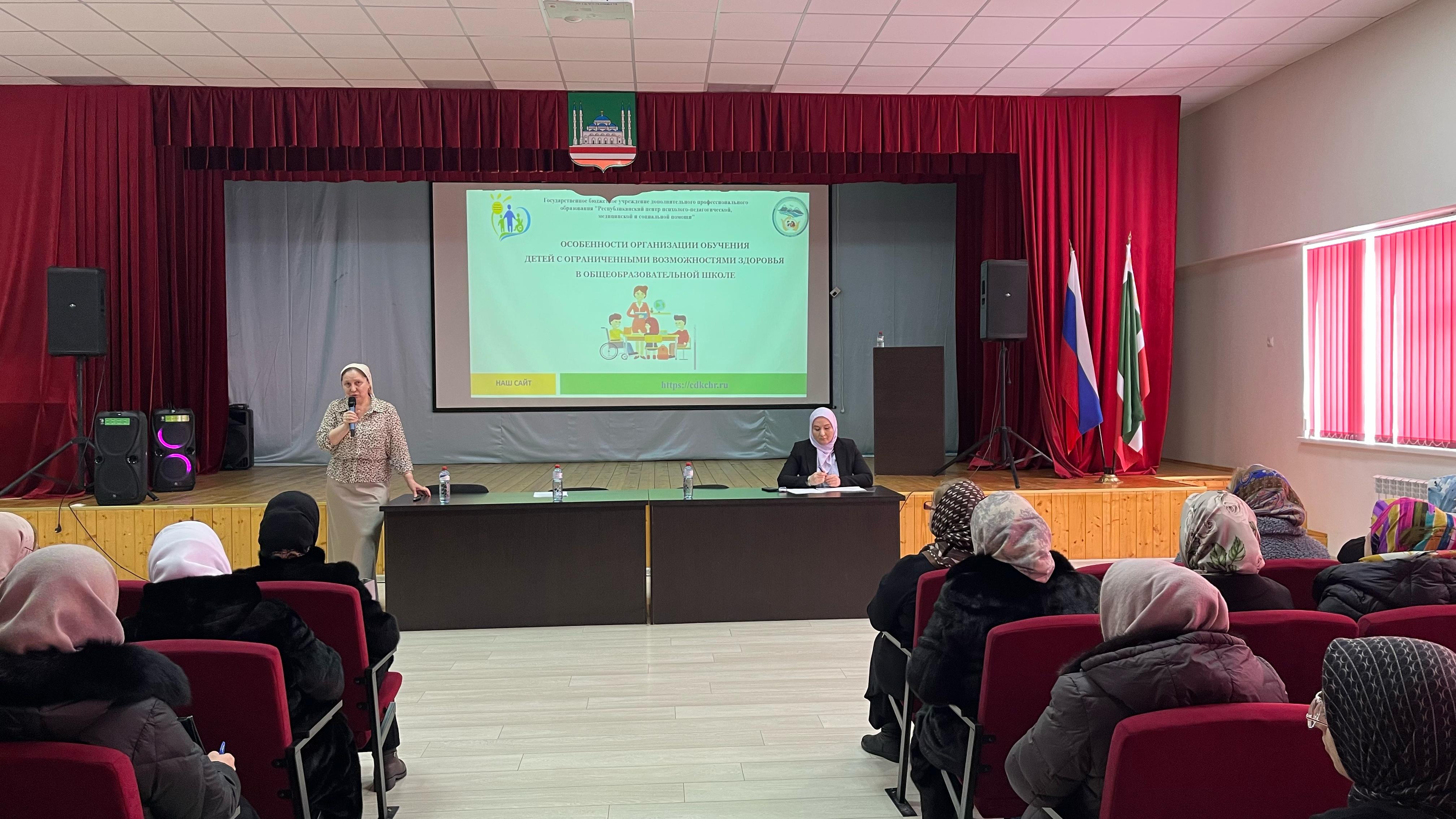 Далее встречу продолжили директор ГБУ директор ГБУ ДПО «РЦППМСП» М.И. Лорсанова и М.Г. Бесултанова, заместитель директора по корреккционной работе ГБУ «С(к)ОШИ для детей ЗПР».