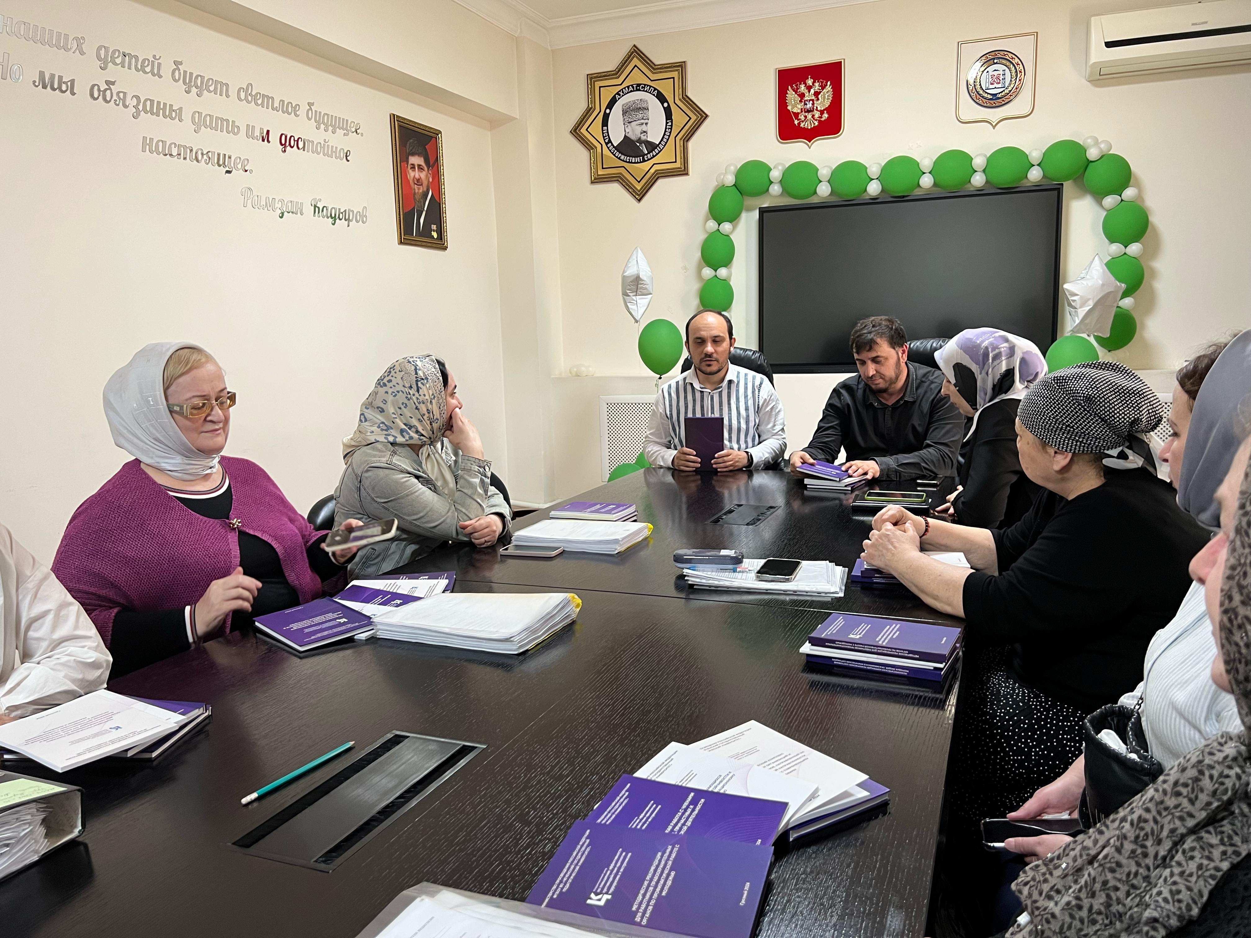 23.04.2025Сегодня в Центре состоялась рабочая встреча сотрудников Координационного центра по противодействию идеологии терроризма и экстремизма Чеченского государственного педагогического университета с главным внештатным педагогом-психологом Министерства образования и науки Чеченской Республики и психологов общеобразовательных организаций Чеченской Республики, на базе которых запущено психолого-педагогическое обследование детей семей участников специальной (военной) операции (далее-СВО).Психолого-педагогическое обследование детей семей участников СВО проводится для разработки и апробации интегрированной модели коррекции стрессообусловленных расстройств у травмированных детей участников СВО в условиях школы.В ходе встречи обсуждались актуальные вопросы профилактики деструктивного поведения среди молодежи, повышения психологической устойчивости обучающихся.